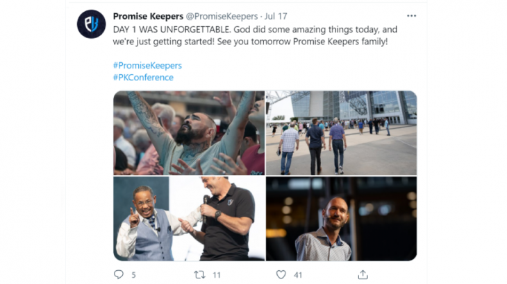 Pada hari Kamis, Promise Keepers (PK) mentweet, “Tuhan melakukan beberapa hal yang menakjubkan” dan itu baru hari pertama.