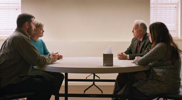 Keluarga anak laki-laki yang tewas dalam penembakan di sekolah bertemu dengan keluarga anak laki-laki yang menembak anak itu. Lokasi pertemuan yang menegangkan ini adalah sebuah gereja. Film ini sederhana namun menarik, menunjukkan dua pasangan duduk berhadap-hadapan di meja kecil saat mereka bergulat dengan seribu pertanyaan yang tidak dapat dijawab. Ini adalah film yang kuat tentang pengampunan dan rekonsiliasi. Film ini cocok ditonton bersama anak yang sudah remaja.
